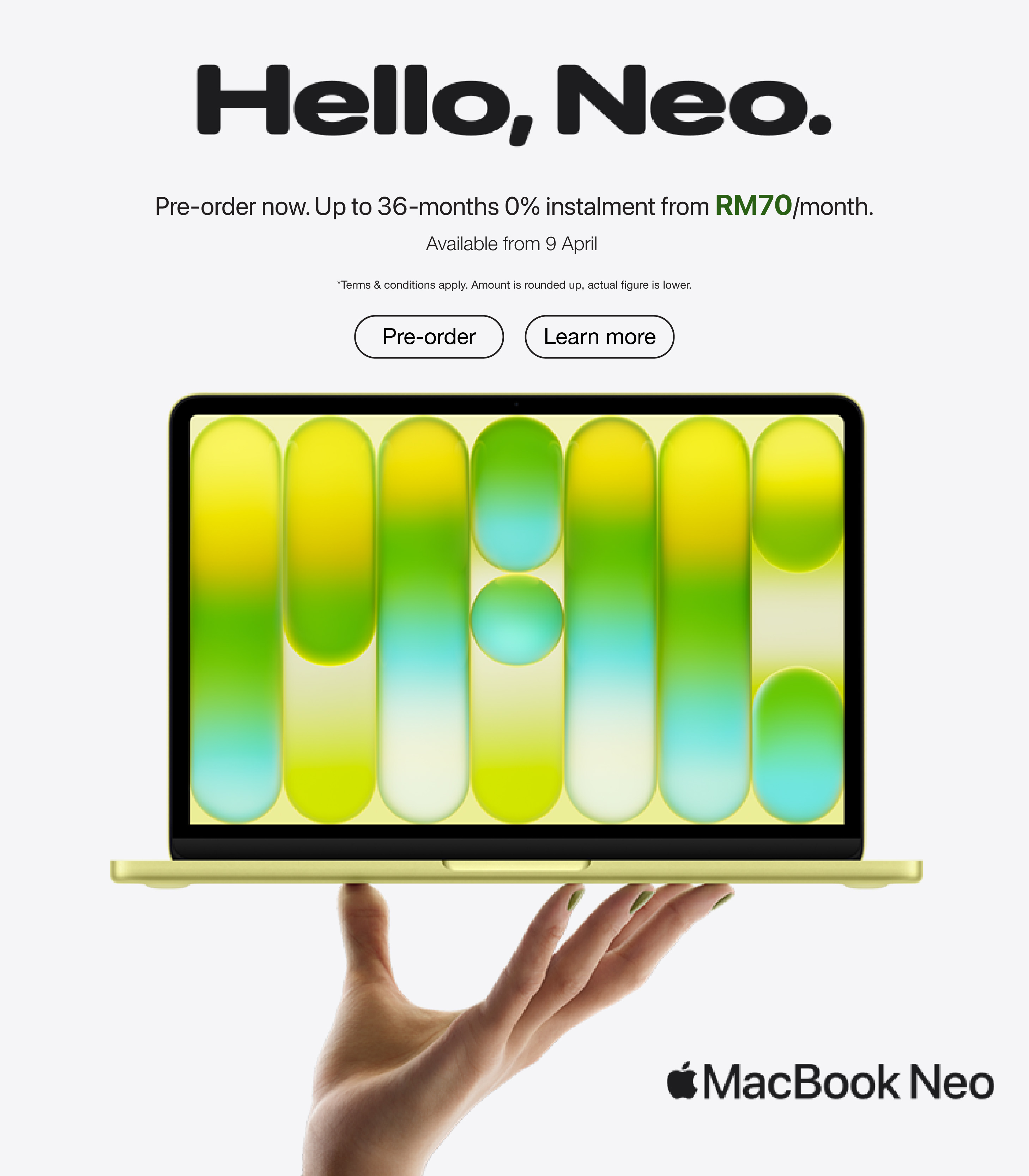 [Pre-order] Apple 13-inch MacBook Neo, A18 Pro chip with 6-core CPU and 5-core GPU, 8GB, 256GB - Citrus [ETA: 3 weeks onwards]