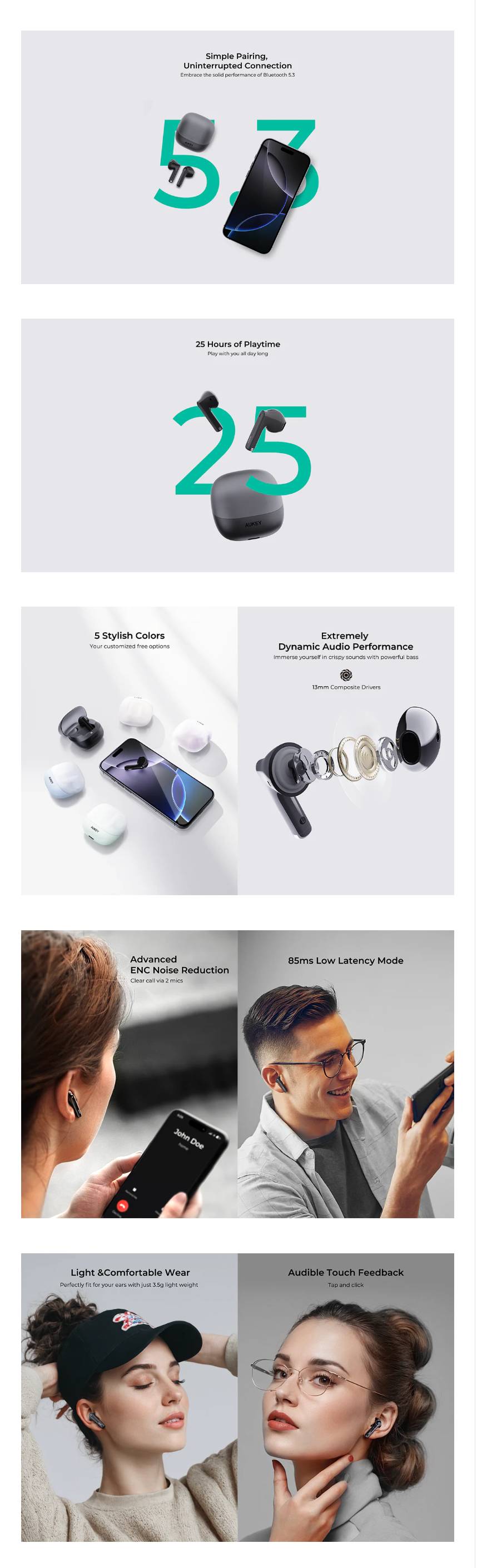 Aukey EP-M4 Move Vibe True Wireless Earbuds - Dark Grey EP-M4-GY 689323789689