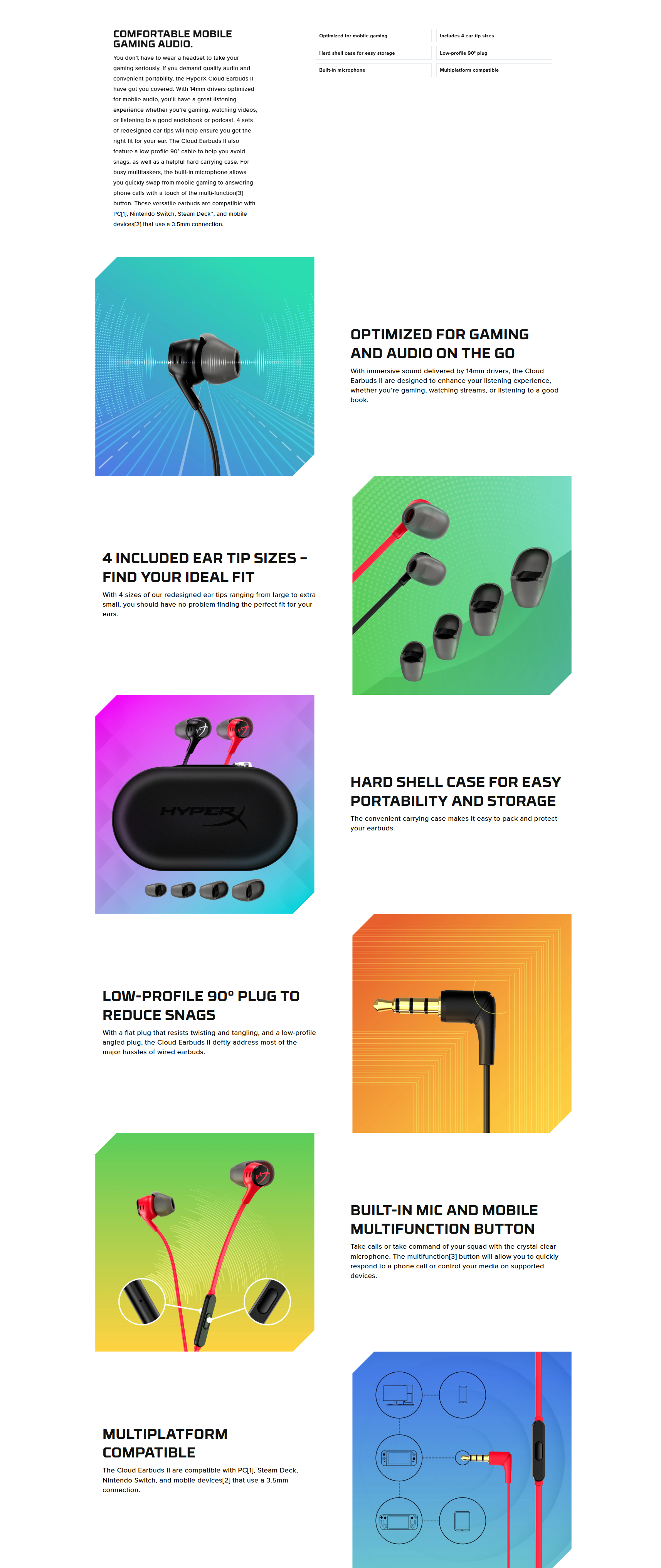 • Highlights •Optimized for mobile gaming •Includes 4 eartip sizes •Low-profile 90° plug