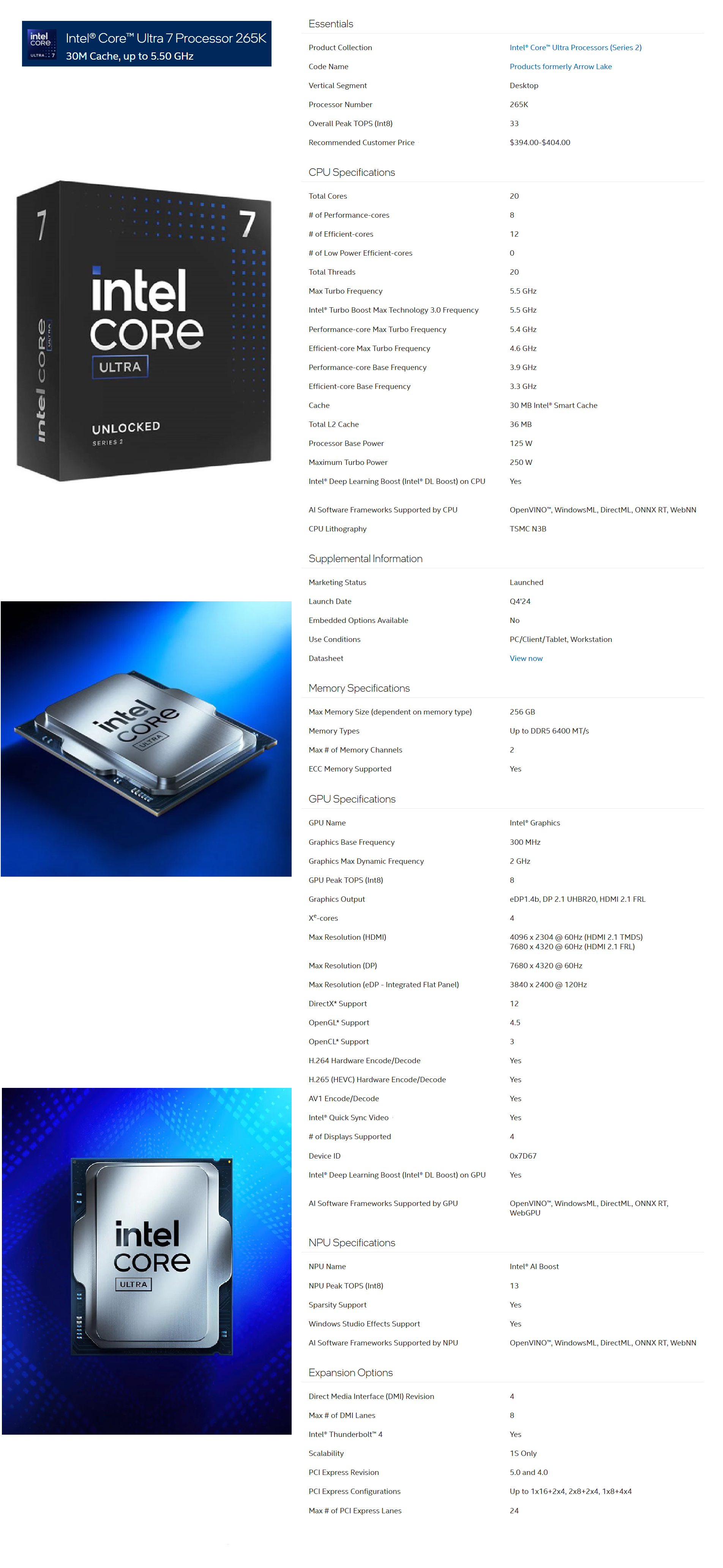 • Name Intel Ultra 7-265K Processor-BX80768265K