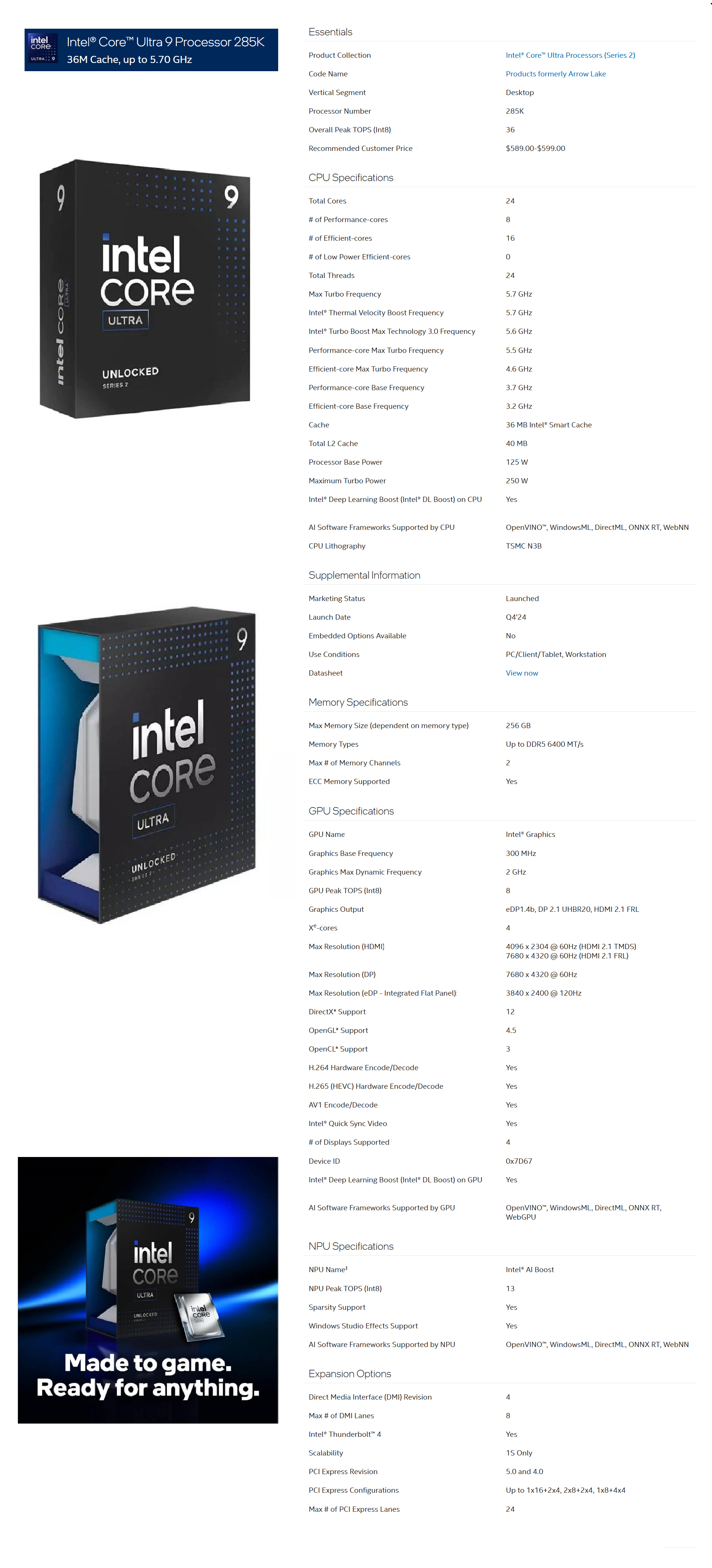 • Name Intel Ultra 9-285K Processor - BX80768285KSRQD5
