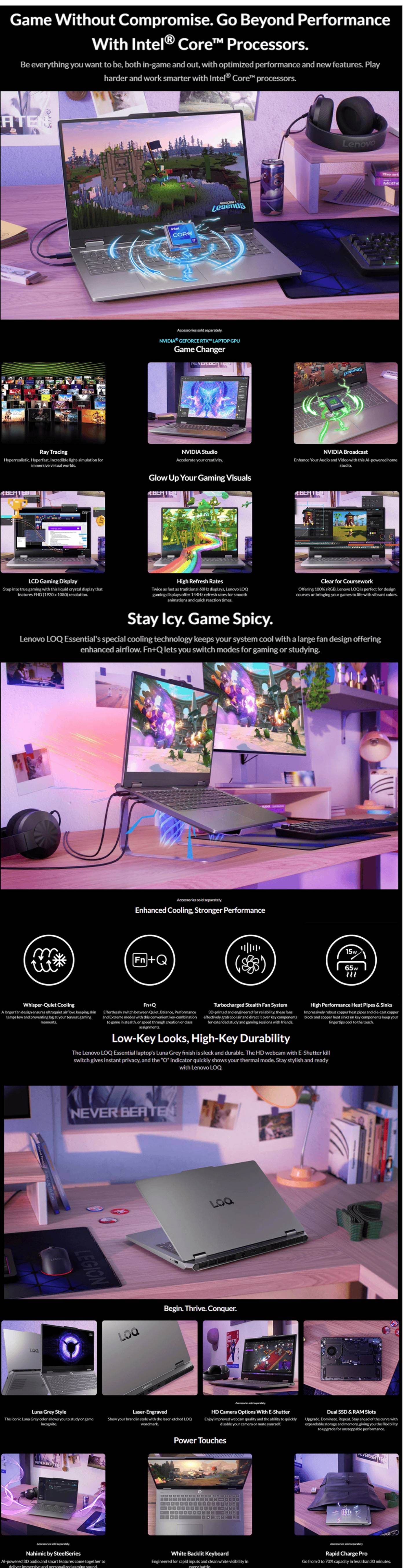 • What's in the Box 1u x Lenovo LOQ Essential 15IRX11 83SC004UMJ Gaming Laptop