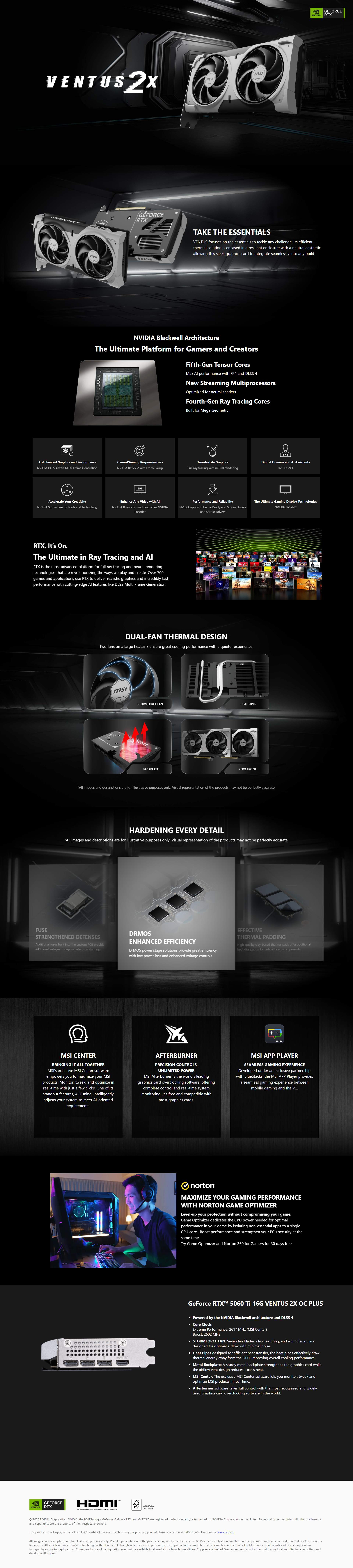 •Marketing Name: GeForce RTX™ 5060 Ti 16G VENTUS 2X OC PLUS