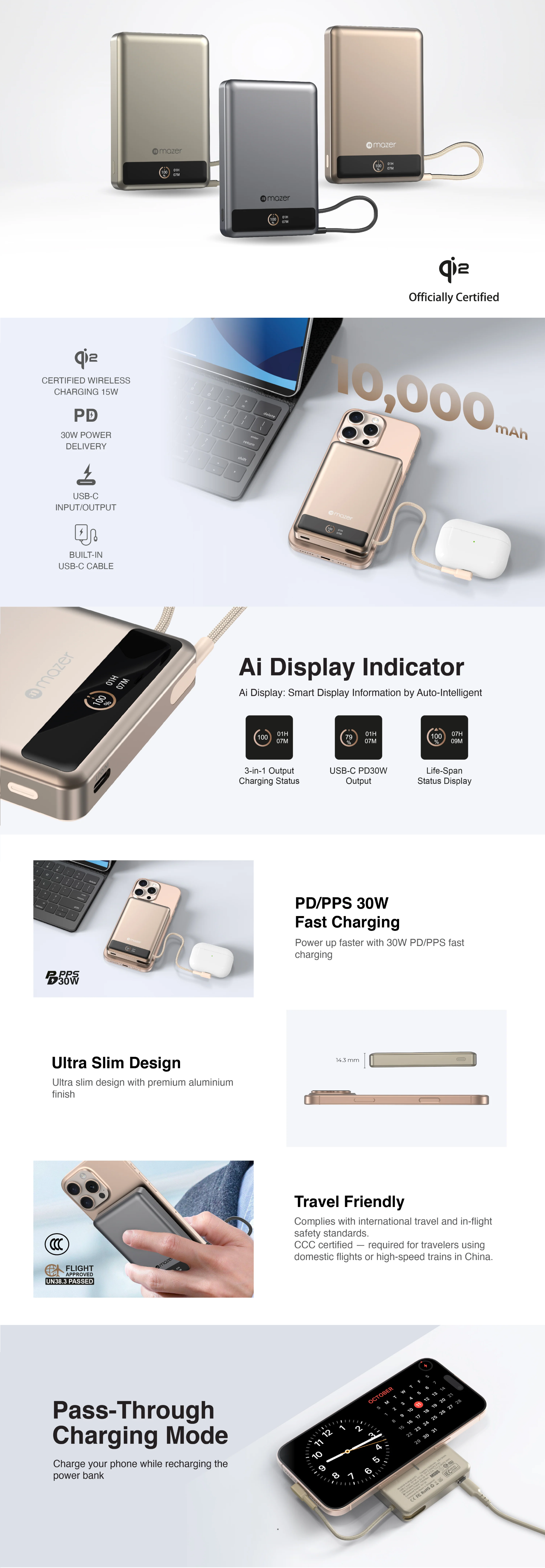 Mazer MagLink70 Qi2 Wireless Powerbank with 30W Cable -Black Grey 8881304545464