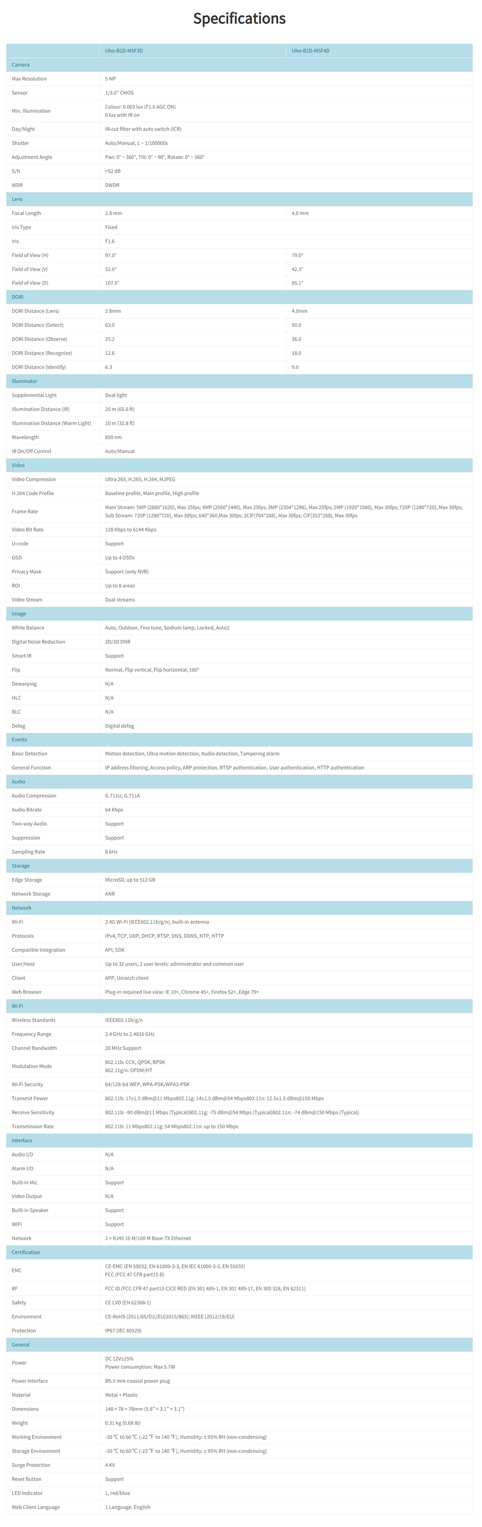 Uniarch B2D 5MP 2.8mm Outdoor Bullet WiFi CCTV Camera IR Night Vision Two-Way Audio