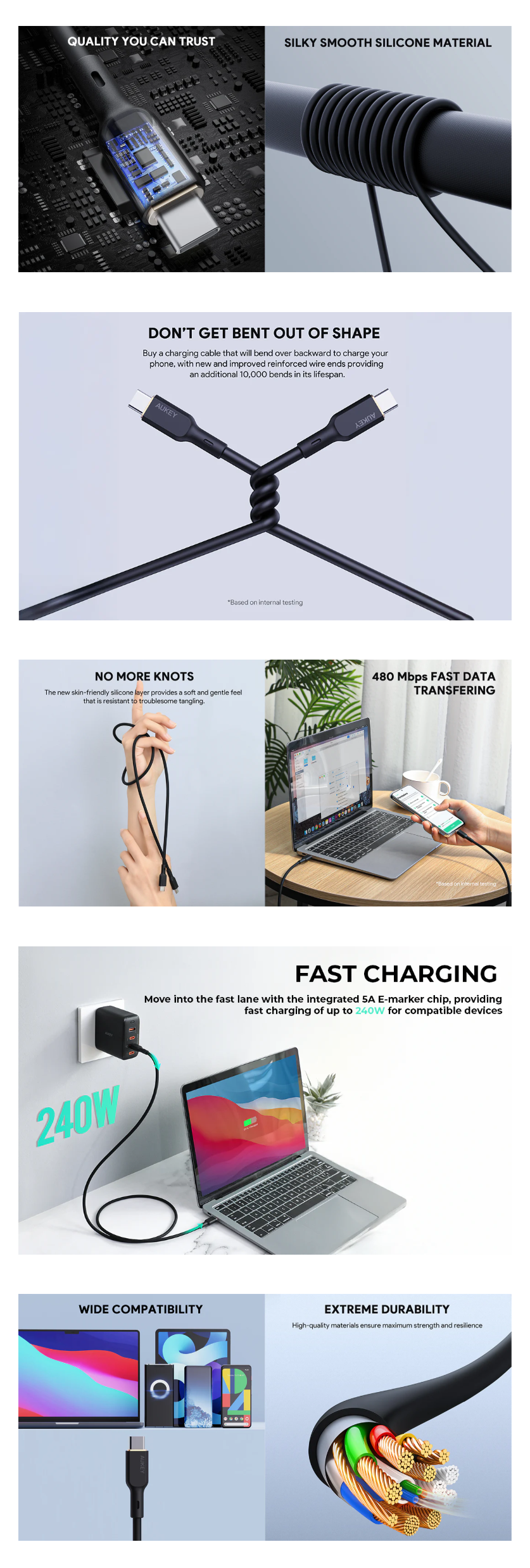Aukey 1.8M 240W Silicon USB C to USB C cable Black 689323787272