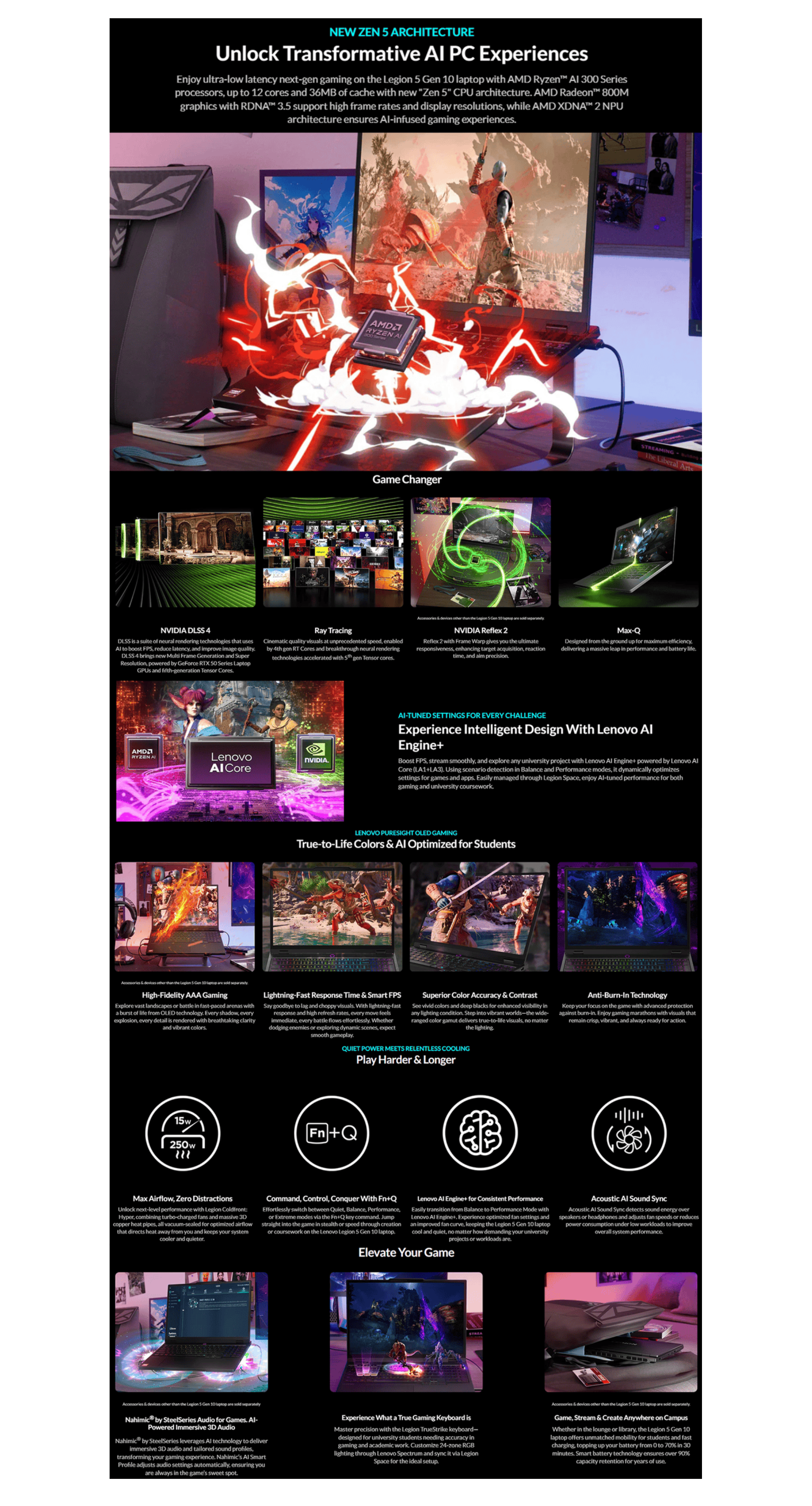Lenovo Legion 5 15AKP10 83F1004LMJ Gaming Laptop (NVIDIA® GeForce RTX™ 5070 | AMD Ryzen™ AI 7 350 | 15.1" WQXGA OLED | 32GB RAM | 1TB SSD | Windows 11 Home)