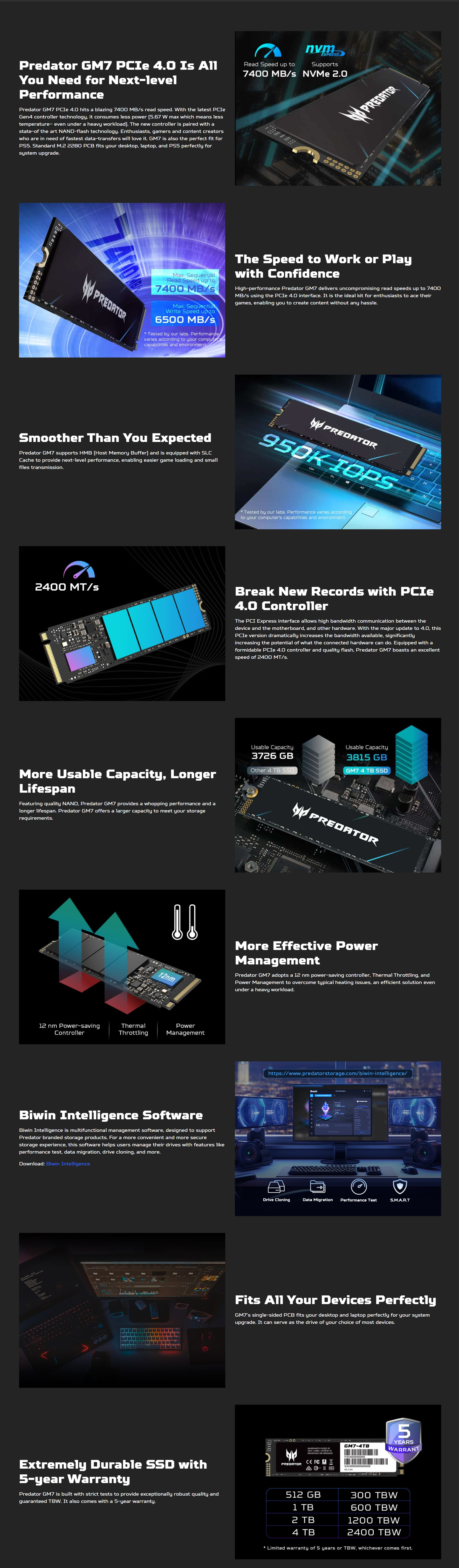 ACER PREDATOR GM7 2TB M.2 PCIe 4.0 NVME SSD BL.9BWWR.119