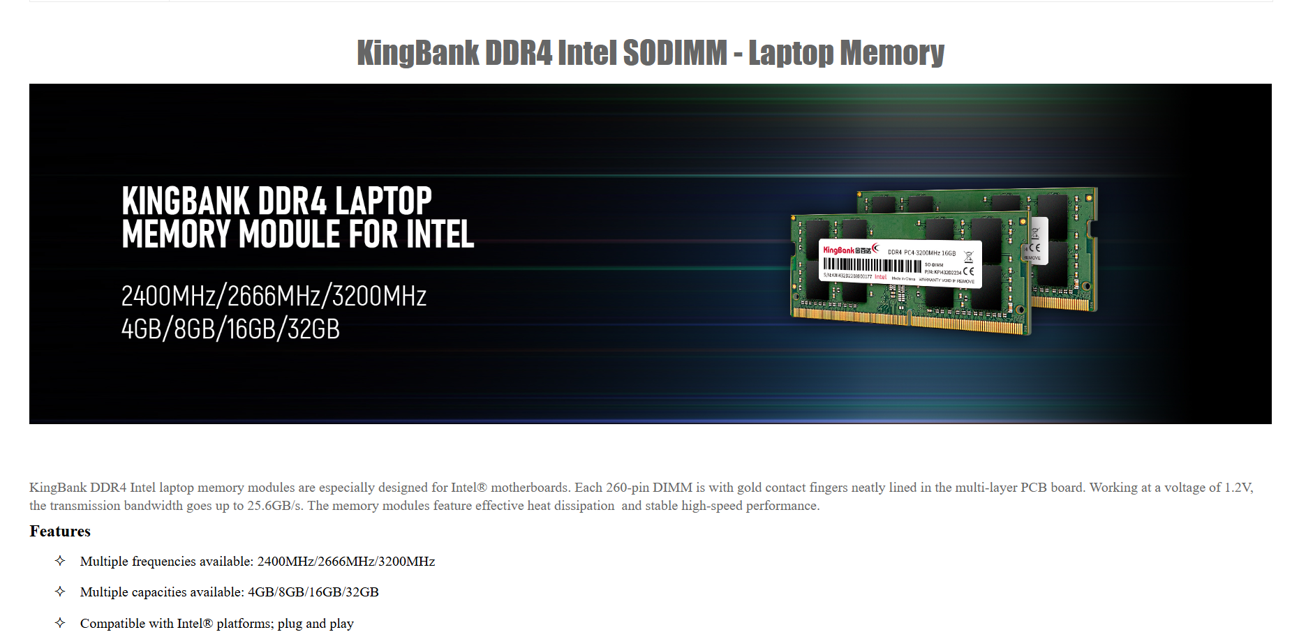 KingBank 8GB DDR4 3200MHz SODIMM RAM KN432C2535