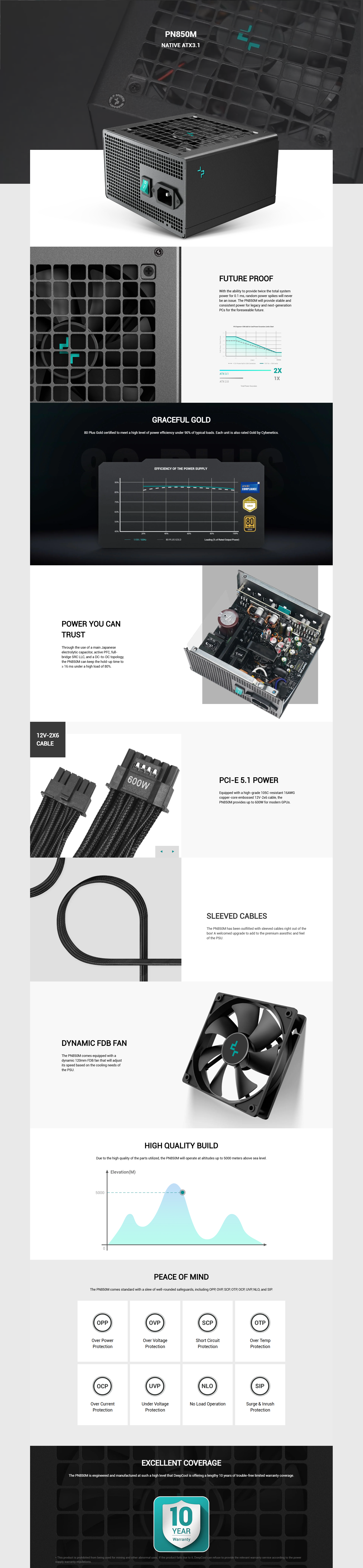 Deepcool PN850M ATX3.1 (PCIe5.1) 80 Plus Gold Full Modular Power Supply (R-PN850M-FC0B-UK / R-PN850M-FC0B-JGUK)