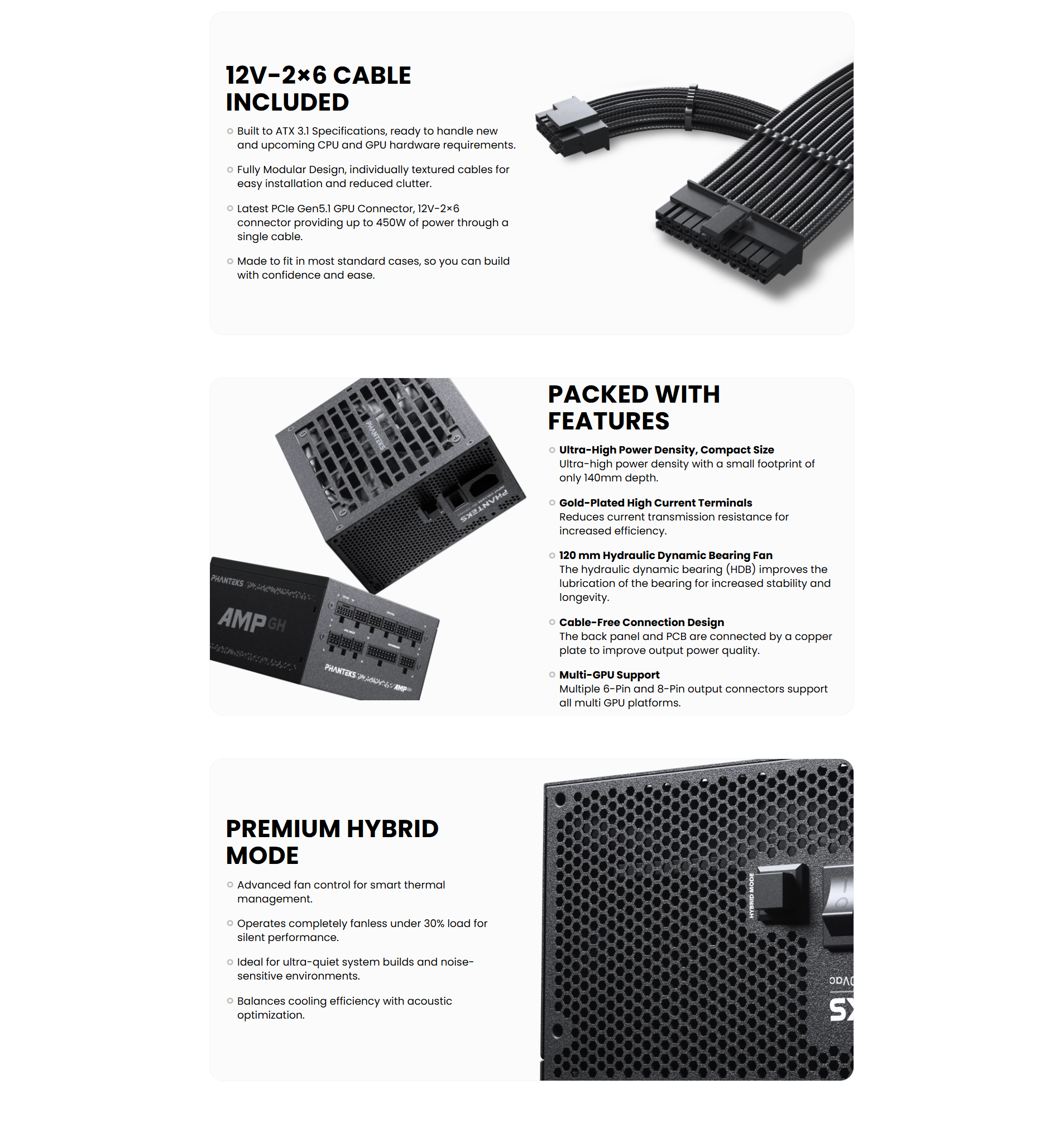 Phanteks AMP GH 850W 80+ Gold ATX 3.1 PCIe 5.1 Full Modular Power Supply Black (PH-P850GH_BK01_UK)