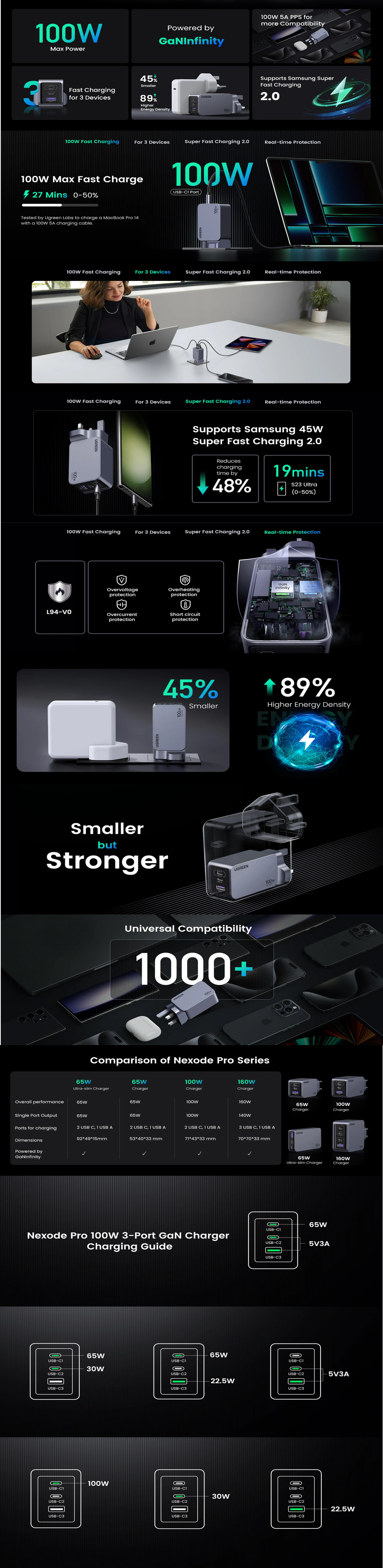 UGREEN NEXODE PRO 100W 2C1A GAN FAST CHARGER+USB-C TO USB-C CABLE 100W 1.5M UG-X757-25875