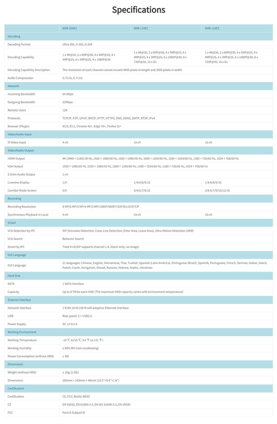 Uniarch 16CH NVR for IP Camera H.265 HDMI VGA NVR-116E2